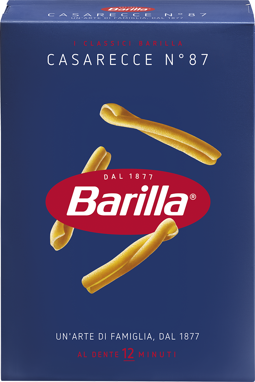 Questo stuzzicante formato è un'interpretazione della "pasta busiata" d'origine araba ed evoca già nel nome l'antica origine casereccia. Le Casarecce Barilla si presentano arrotolate su se stesse e incurvate verso la punta. Grazie alla loro superficie liscia e delicatamente porosa, permettono di raccogliere ogni condimento fino all'ultima goccia, esaltandone il sapore al palato.