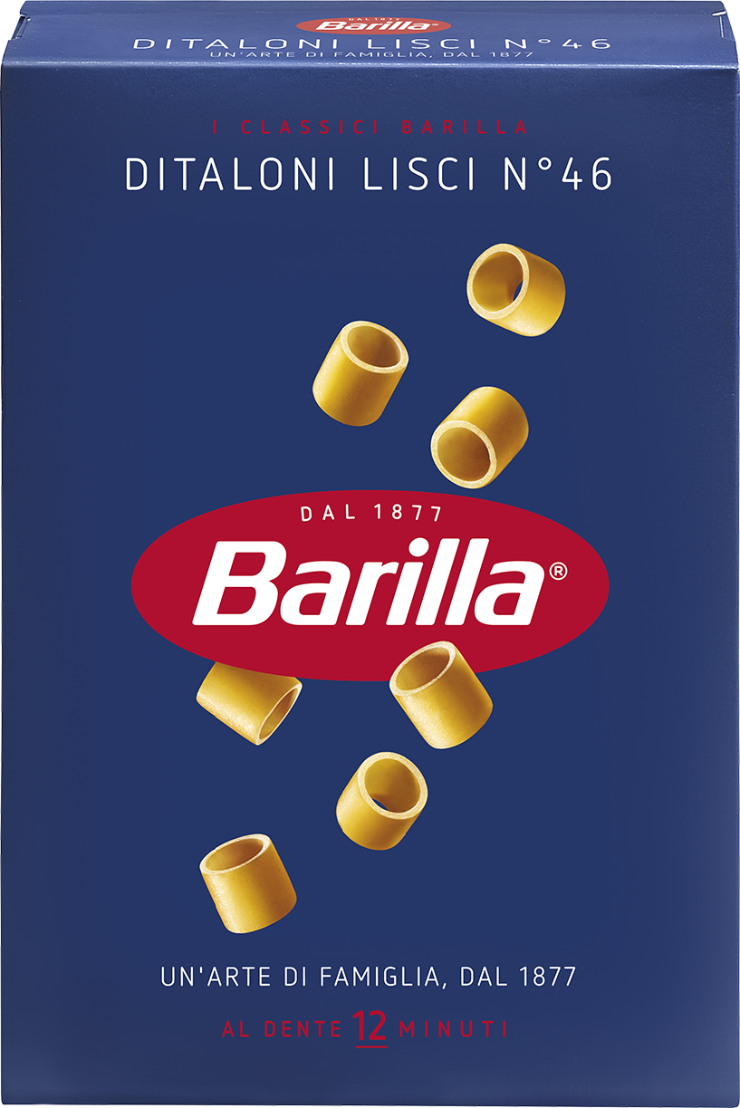 Ispirati nella forma all'omonimo accessorio per il cucito, i Ditaloni se ne differenziano solo perché aperti nella parte superiore. I Ditaloni Lisci Barilla, grazie alla superficie levigata, si accordano perfettamente con i profumi dell'orto e portano in tavola la fantasia della natura unita all'antica tradizione della pasta. Esaltano così la genuinità della cucina tradizionale, conferendole ancora più grazia.
