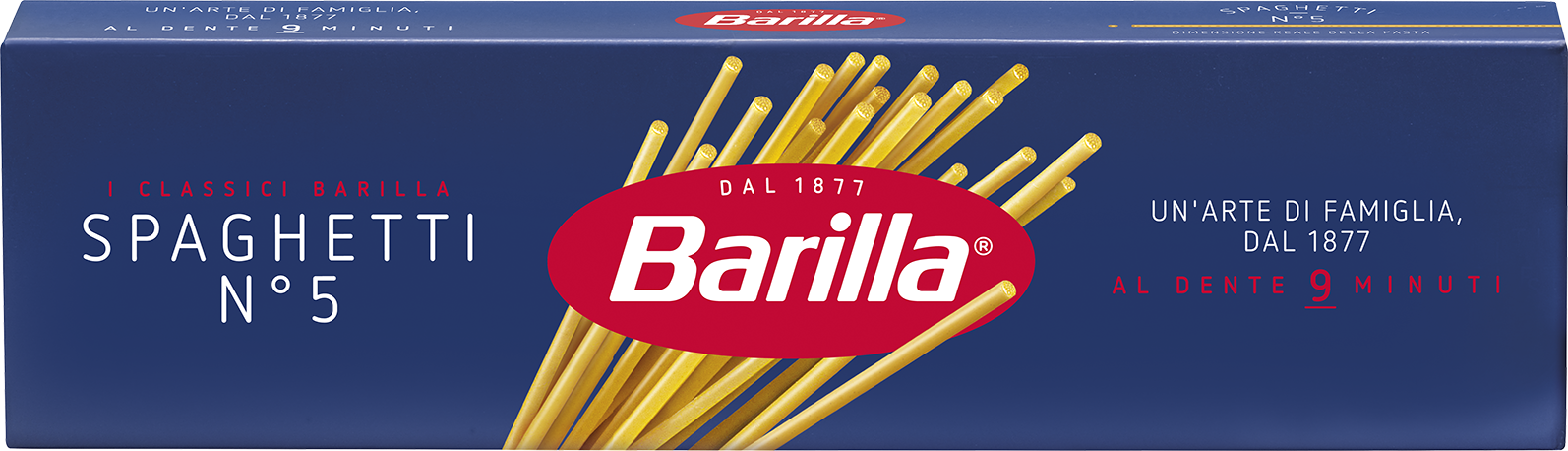 Il segreto della bontà degli Spaghetti n. 5 Barilla? L'attenta selezione di grani duri pregiati e una forma più corposa, studiata per dare agli Spaghetti Barilla uno spessore equilibrato e straordinaria consistenza.