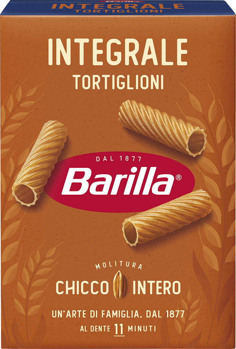 La geometria dei Tortiglioni Integrali Barilla sembra nata per accogliere i condimenti, che si insinuano nella ricca cavità centrale e nelle spire della rigatura esaltando il gusto dei tuoi sughi. Una pasta perfetta per dare sfogo alla fantasia in cucina.