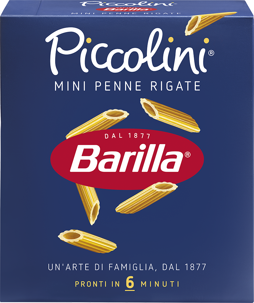 Pronte in soli 6 minuti, le Mini Penne Rigate Piccolini si presentano più snelle e leggere delle normali Penne. Il loro carattere molto dinamico è adatto a esaltare ogni sugo e a dare un tocco di novità alla tavola di ogni giorno.I chicchi che utilizziamo provengono dalle migliori varietà di grano, coltivate con cura e passione per garantire una qualità superiore che conquista grandi e piccoli.