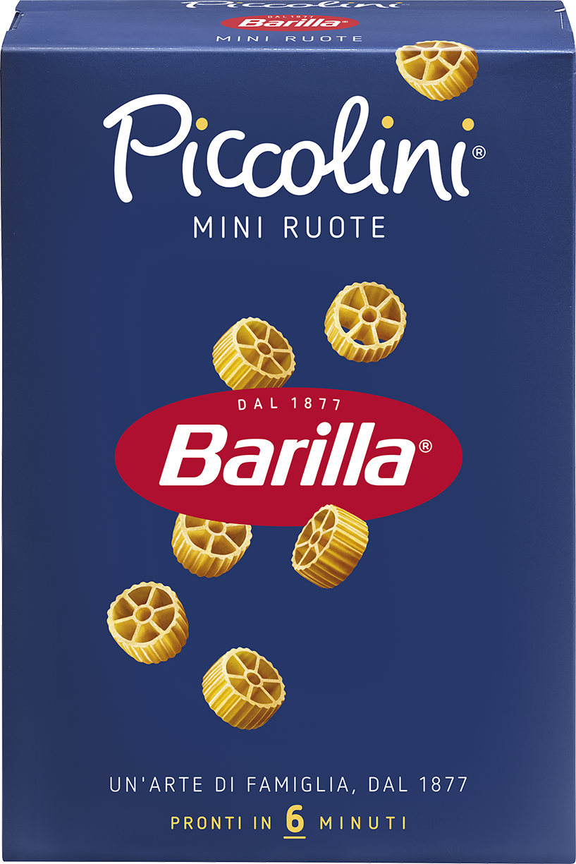 Pronte in soli 6 minuti, le Mini Ruote Piccolini combinano l'allegria della dimensione in miniatura con il divertimento di una forma perfettamente equilibrata. I chicchi che utilizziamo provengono dalle migliori varietà di grano, coltivate con cura e passione per garantire una qualità superiore che conquista grandi e piccoli.