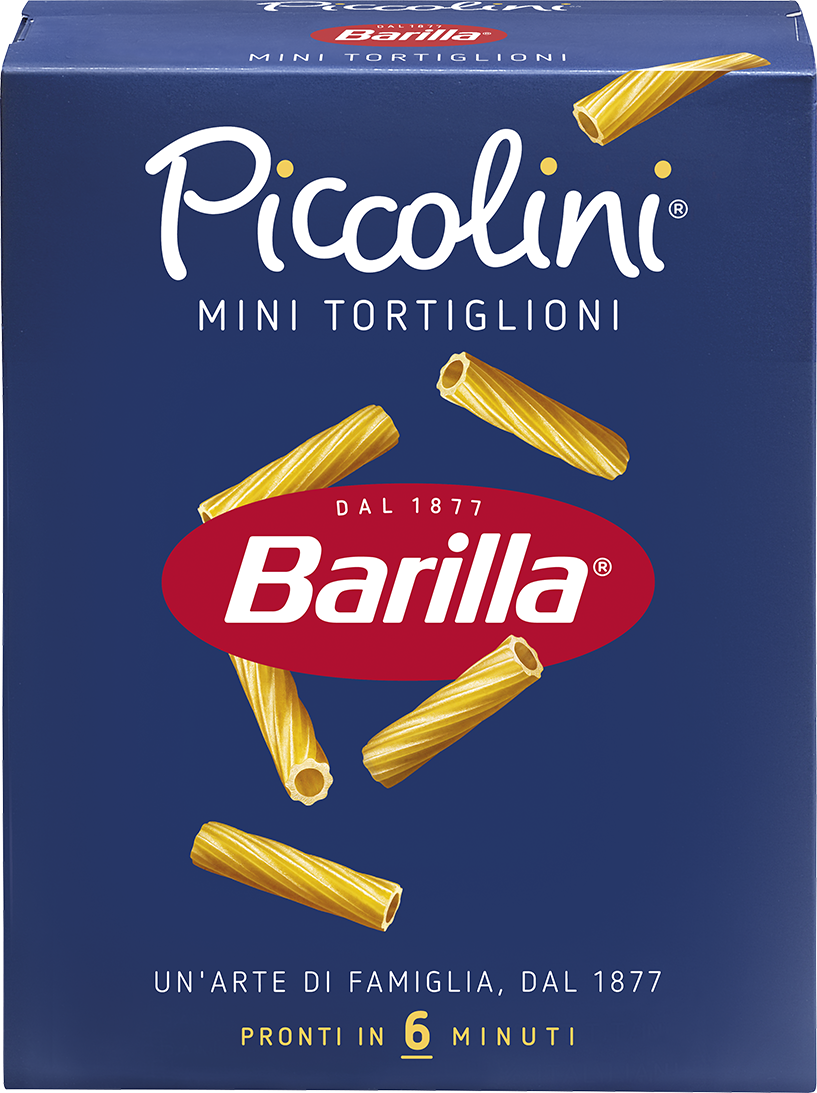 Con i Mini Tortiglioni, Piccolini ha saputo interpretare un classico della tradizione in un formato piccolo, leggero ed accattivante, che conserva intatte le originali caratteristiche di gusto e qualità. Pronti in soli 6 minuti. Barilla Piccolini … e mangeranno tutti felici e contenti! I chicchi che utilizziamo provengono dalle migliori varietà di grano, coltivate con cura e passione per garantire una qualità superiore che conquista grandi e piccoli.