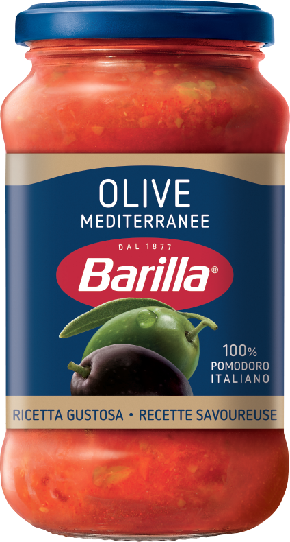 Il Sugo con Olive Barilla nasce da una fresca combinazione di olive verdi e nere, deliziosi pomodori 100% italiani. Preparato secondo tradizione, senza l'aggiunta di conservanti, il Sugo con Olive Barilla è una ricetta saporita e tipicamente mediterranea, pronta per regalare alla tua pasta il sapore della buona cucina italiana.
