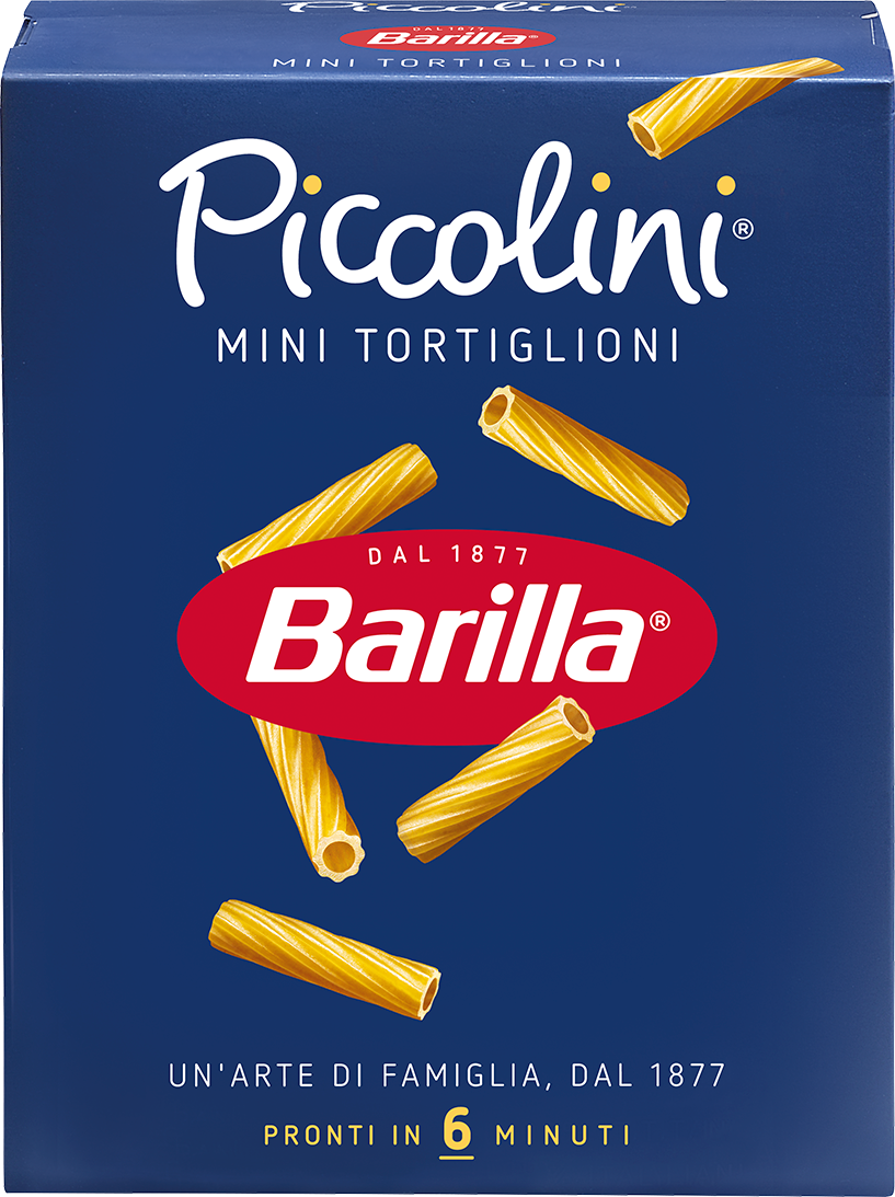 Con i Mini Tortiglioni, Piccolini ha saputo interpretare un classico della tradizione in un formato piccolo, leggero ed accattivante, che conserva intatte le originali caratteristiche di gusto e qualità. Pronti in soli 6 minuti. Barilla Piccolini … e mangeranno tutti felici e contenti! I chicchi che utilizziamo provengono dalle migliori varietà di grano, coltivate con cura e passione per garantire una qualità superiore che conquista grandi e piccoli.