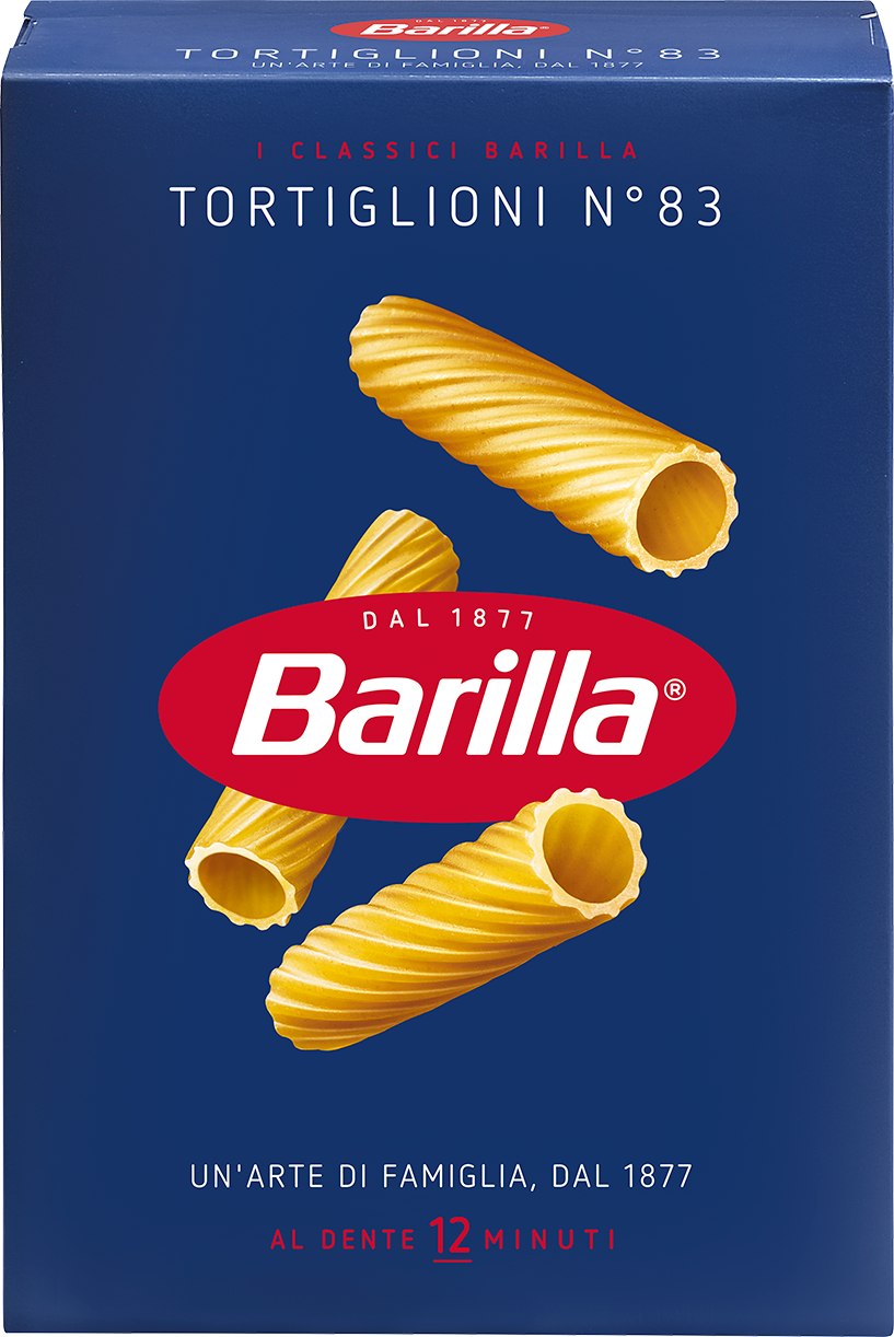 I Tortiglioni Barilla hanno un'eleganza inconfondibile: tutto merito della loro forma, nata per raccogliere il condimento, che si insinua voluttuosamente tra le spire della rigatura. La sobrietà dei Tortiglioni Barilla ben si sposa anche ai sughi più corposi e rende il formato particolarmente versatile e allo stesso tempo originale. Il segreto della bontà dei Tortiglioni Barilla? L'attenta selezione di grani duri pregiati e una forma più corposa, studiata per dare ai Tortiglioni Barilla uno spessore equilibrato e straordinaria consistenza.
