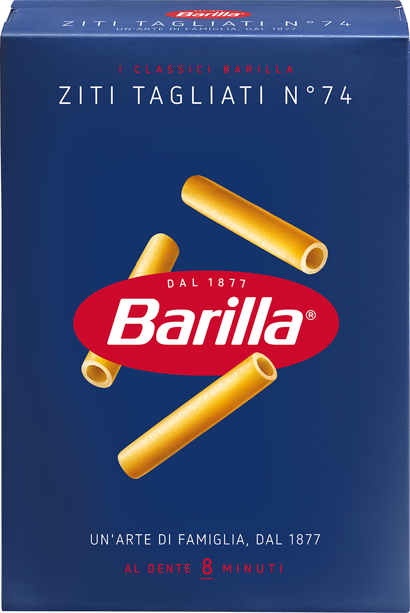 "Zita", a Napoli, significa sposa e "la pasta da zita" è la pasta classica per il pranzo di nozze. Gli Ziti sono dunque un formato di pasta un tempo destinato alle occasioni solenni, nato come pasta lunga che la tradizione napoletana vuole spezzata a mano. Gli Ziti Tagliati Barilla hanno lo spessore caratteristico di questo formato e si presentano in una pratica versione tagliata che li rende adatti a tante ricette differenti.